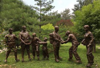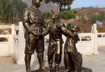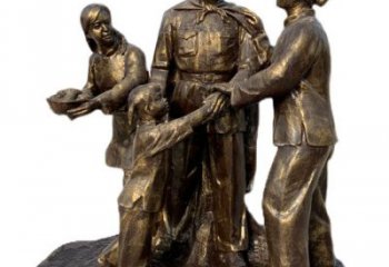 玻璃鋼仿銅八路軍慰問農(nóng)民的情景小品