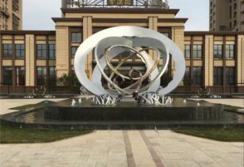 不銹鋼創(chuàng)意圓環(huán)噴泉雕塑——給小區(qū)售樓部注入新穎水景