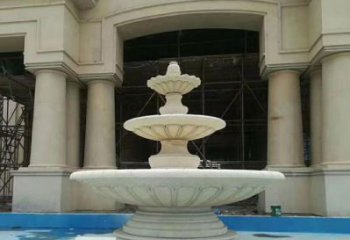 多層噴泉石雕結(jié)合的戶外水景飯店
